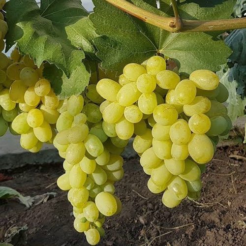 Срок созревания — 110–115 дней. В южных регионах Казахстана урожай созревает в конце июля, что позволяет избежать перегрева ягод в августе. Грозди конические, массой 600–1000 г, при хорошем уходе — до 1,5–2 кг.