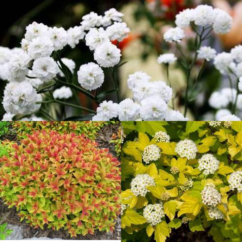 - Тысячелистник «Маршмеллоу» (1 год) – многолетник с воздушными розово-белыми зонтиками, напоминающими сладкую вату. Цветёт долго и обильно, добавляя лёгкости и мягкого шарма в композицию.